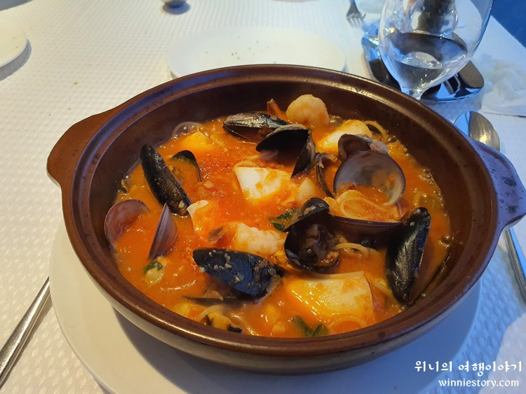 내가 시킨 뚝배기 누룽지 제철 해산물 파스타.