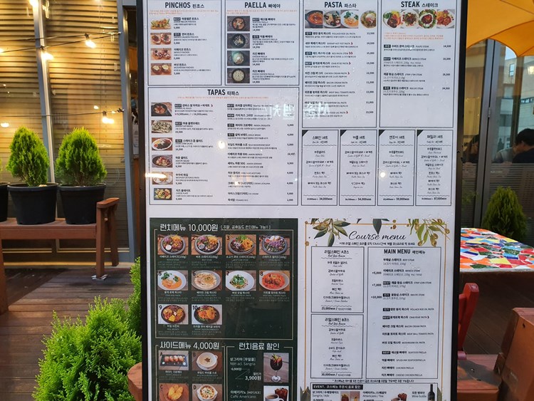 밖에 메뉴판이 있어서 잠깐 보고 들어갔다. 여자친구랑 나는 2인 세트인 스페인 세트를 시켰다.