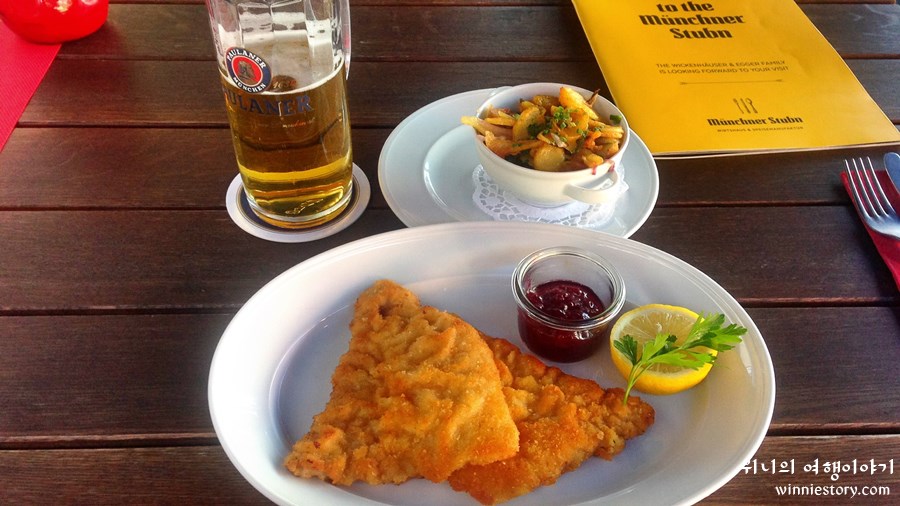 그래도 독일에 왔으니까 독일 맥주는 한번 마셔봐야지! 하고 뮌헨역 앞에 있는 식당에서 파울라너와 함께 슈니첼을 먹었다. 뮌헨은 정말 스쳐가는 도시였다.