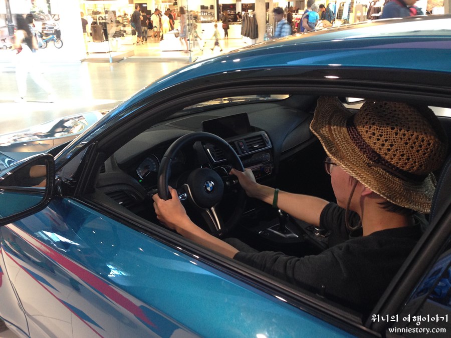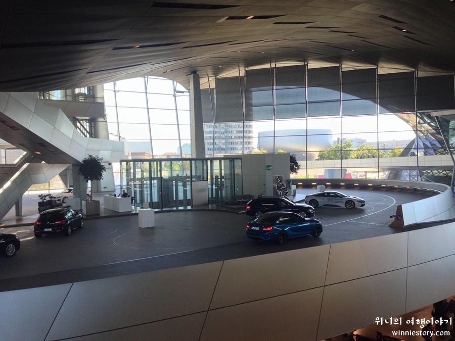 오히려 더 재밌었던건 BMW 벨트다. BMW 뮤지엄에서 다리를 건너서 올 수 있는데 여기는 시승을 해볼 수도 있고 차 내부에 타볼 수도 있는 쇼케이스용 건물이다.