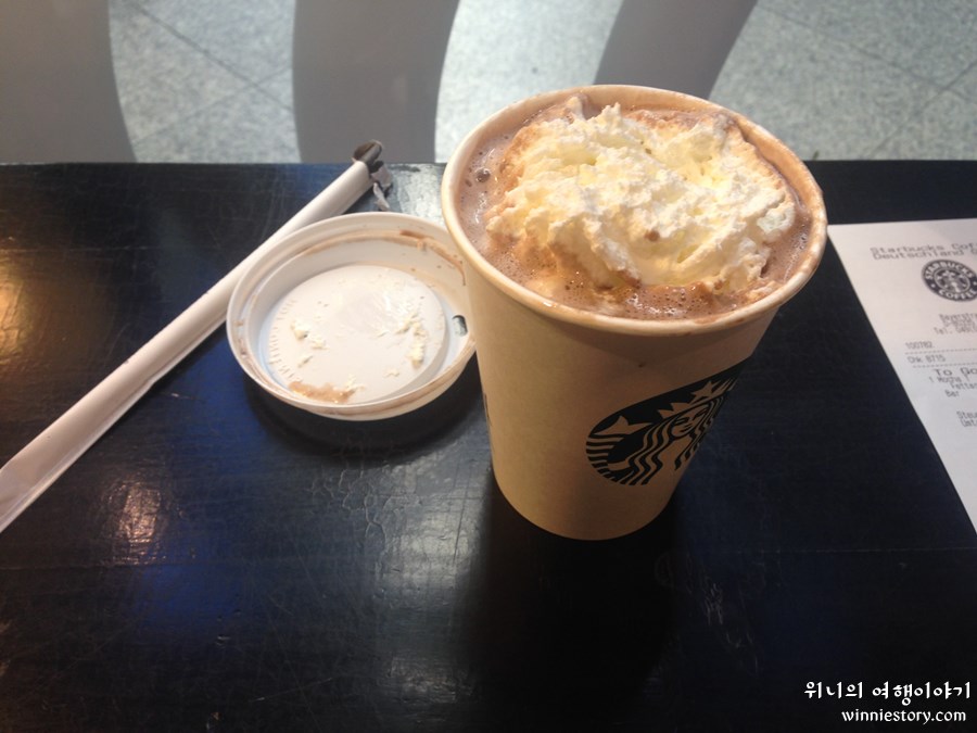 중간에 와이파이도 사용하고 너무 피곤해진 몸을 이끌기 위해서 잠시 스타벅스에 앉아서 카페 모카 한잔을 마셨다.