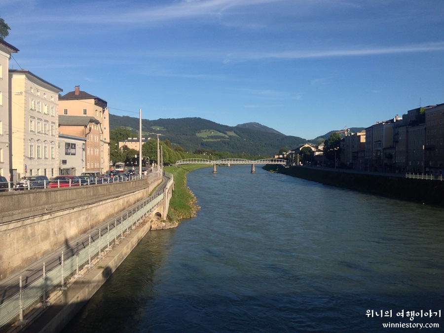 체크인을 해서 숙소에 짐을 풀고 잠깐 주변 구경을 해보기로 했다. 잘츠부르크를 관통하는 잘차흐강.