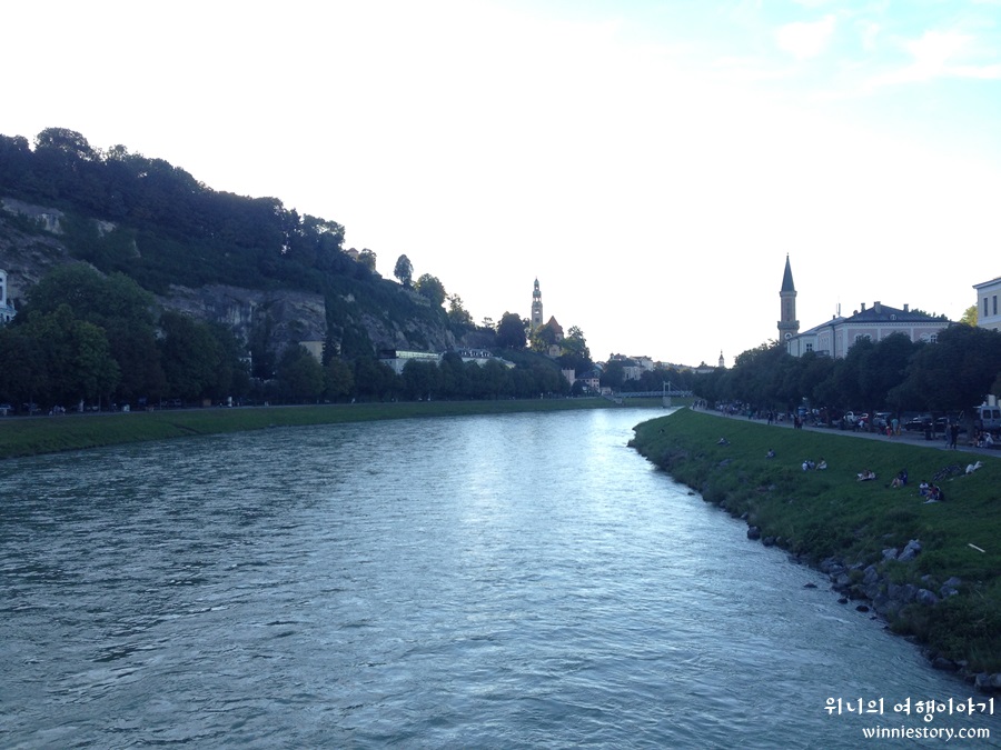 체크인을 해서 숙소에 짐을 풀고 잠깐 주변 구경을 해보기로 했다. 잘츠부르크를 관통하는 잘차흐강.