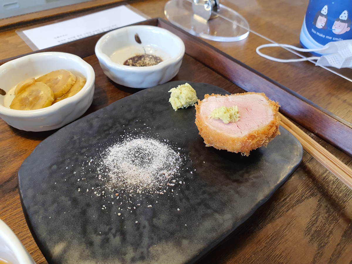 원래 여기 돈까스 먹을 때 장점으로 꼽히는 것 중 하나가 트러플 소금이 기본 세팅에 같이 나와서 그걸 찍어 먹으면 돈까스의 풍미가 더 살아난다고 하는데..