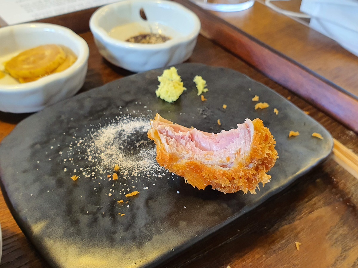 원래 여기 돈까스 먹을 때 장점으로 꼽히는 것 중 하나가 트러플 소금이 기본 세팅에 같이 나와서 그걸 찍어 먹으면 돈까스의 풍미가 더 살아난다고 하는데..