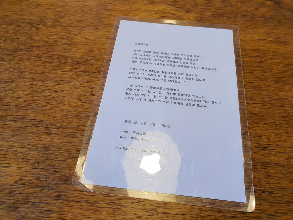 도톰카츠에서 사용하는 돈육은 YBD 종을 사용하고 있다는데, 사실 돼지고기 자체가 어떤 종인지는 잘 모르지만..
