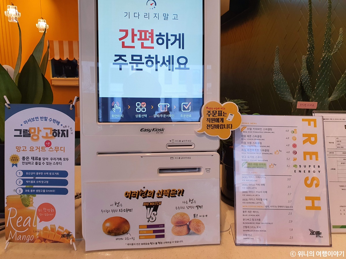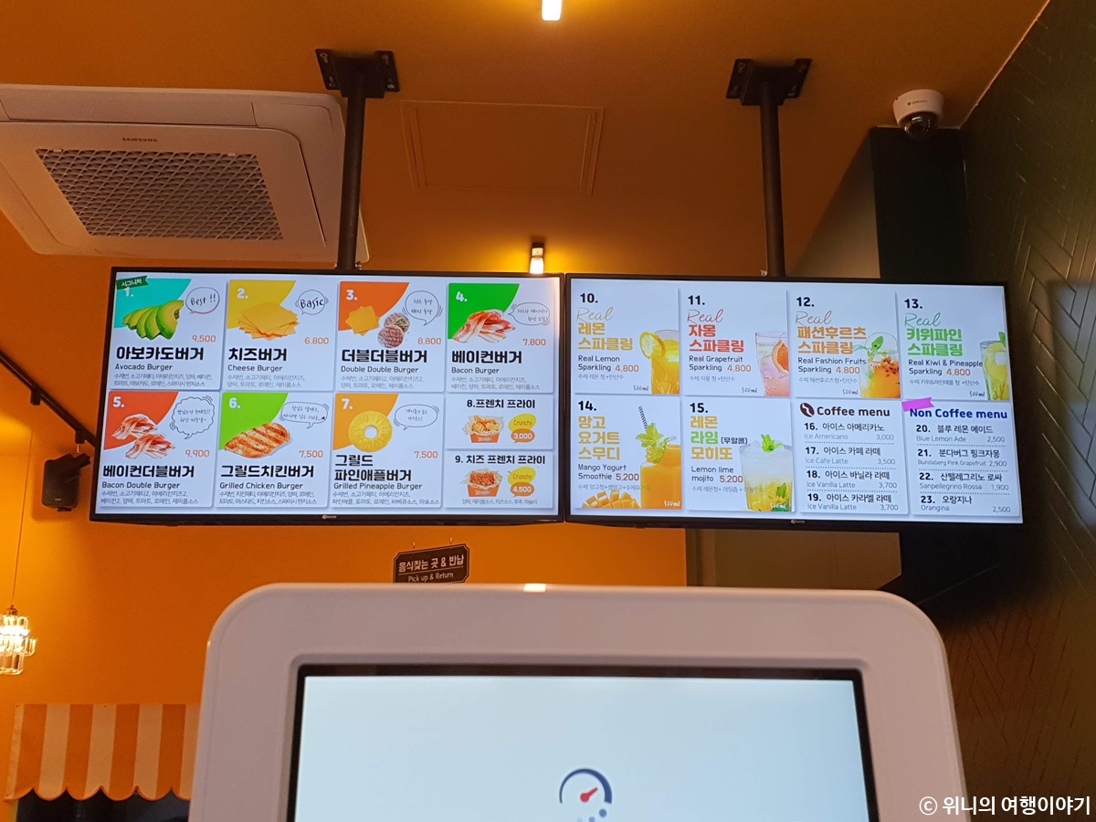 앞쪽에 있는 키오스크에서 주문을 하면 되는데, 일단 버거를 고르기 전에 번을 2개 중에 고를 수 있다.