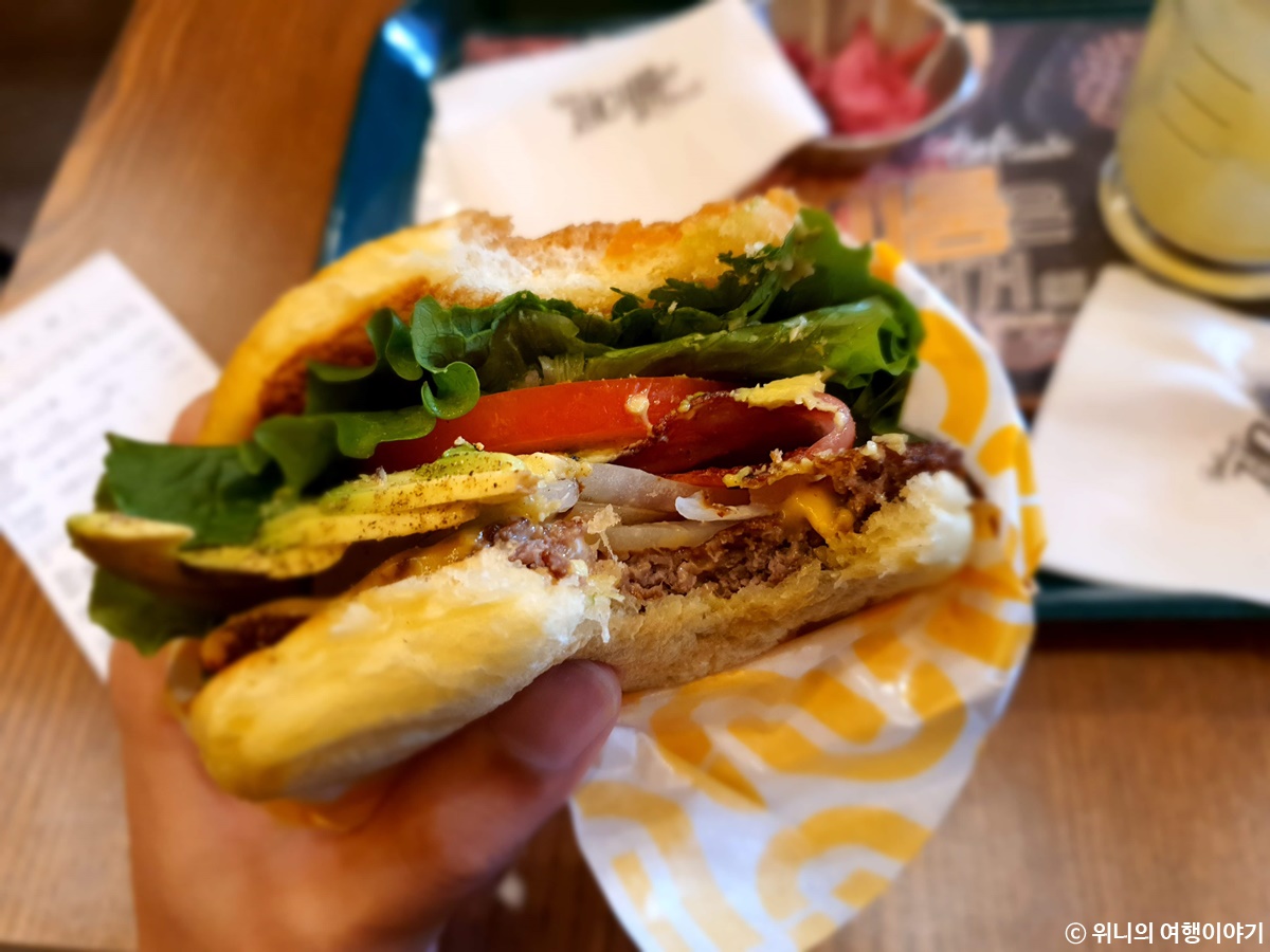 근데 한입을 물었을 때 뭐랄까.. 재료가 신선한건 알겠는데 햄버거라는 느낌이 안 들고 재료들이 다 입안에서 따로 노는 느낌이었다.