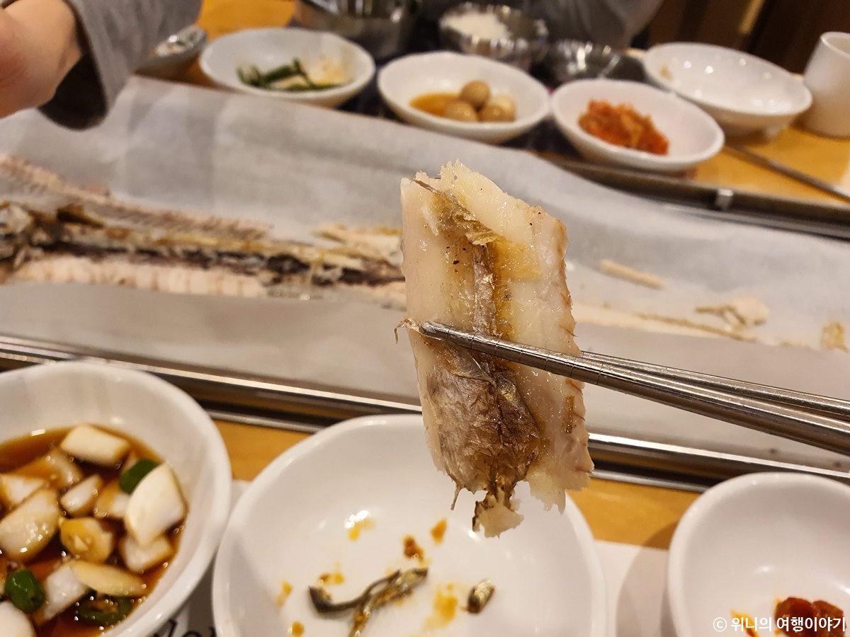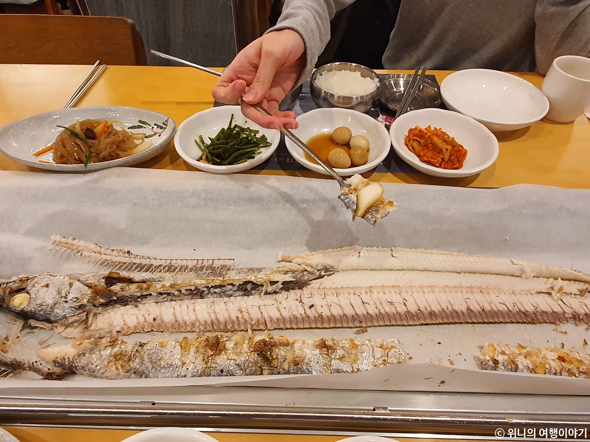 후에 설명하지만 은갈치 먹기 전에 종업원분이 설명해주시길 은갈치 머리 부분은 낚싯줄이 있을 수 있기 때문에 그 부분만 먹지 말고 아래쪽으로 먹으라고 하셨다.