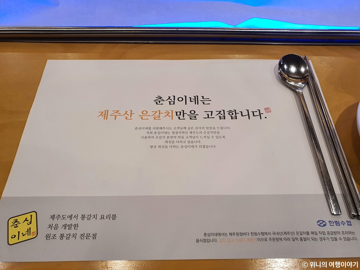 '춘심이네는 제주산 은갈치만을 고집합니다.'
