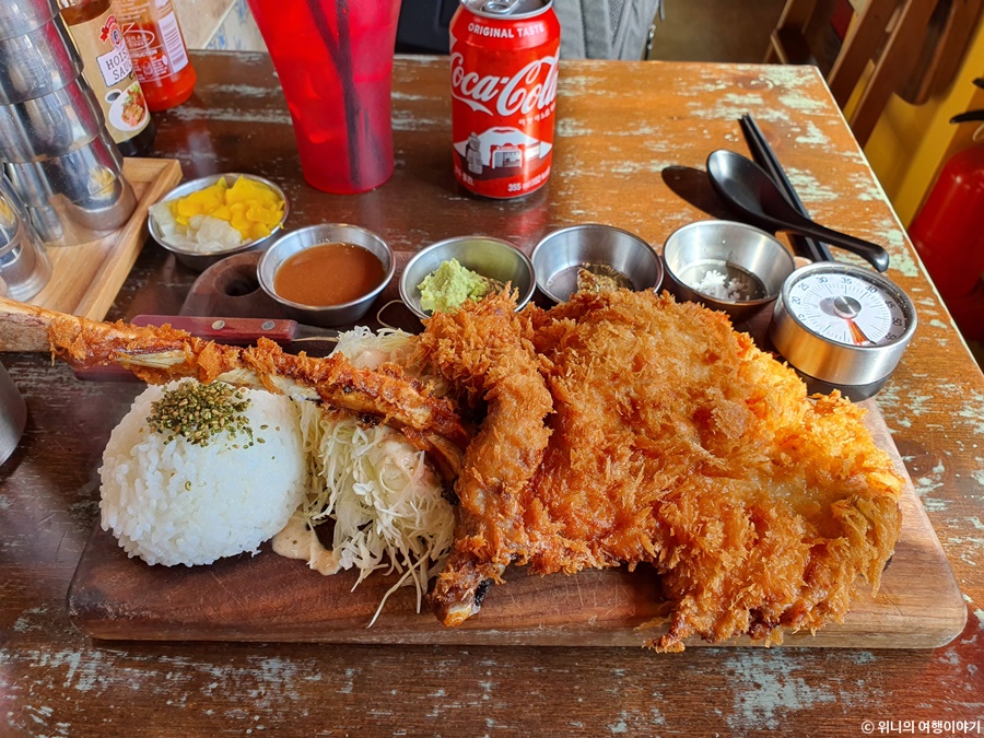 기본적으로 돈까스는 대부분 파는게 등심이나 안심 부위인데, 토마호크카츠라는 이름 답게 갈비 부분이 있었다.