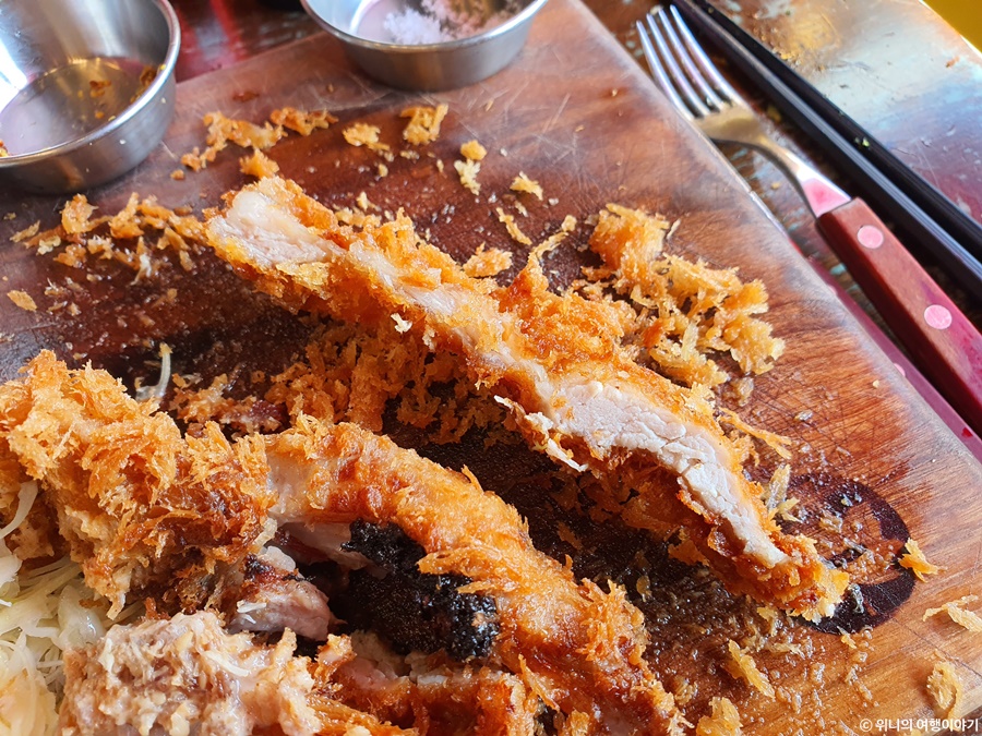 돈까스에 갈비 부분이 나오는건 처음 봤었는데 맨날 먹는 부위인 등심과 다르게 갈비 만의 식감이 돋보였다.