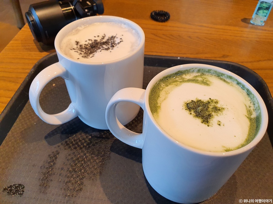 그중에서 제주 쑥쑥 라떼 하고 제주 까망 라떼를 먹었는데 둘 다 괜찮았다. 오히려 나한텐 쑥쑥라떼가 훨씬 더 맛있었고 여자친구는 까망라떼를 좋아하더라.
