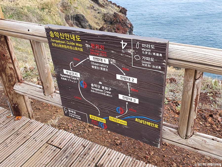 처음 송악산 둘레길 들어오면서 사진 찍고 나서 안내도까지 올 때까지 대략 35분 정도 걸리니까, 한 바퀴 도는데 약 1시간 걸린다고 하면 얼추 맞을 듯하다.