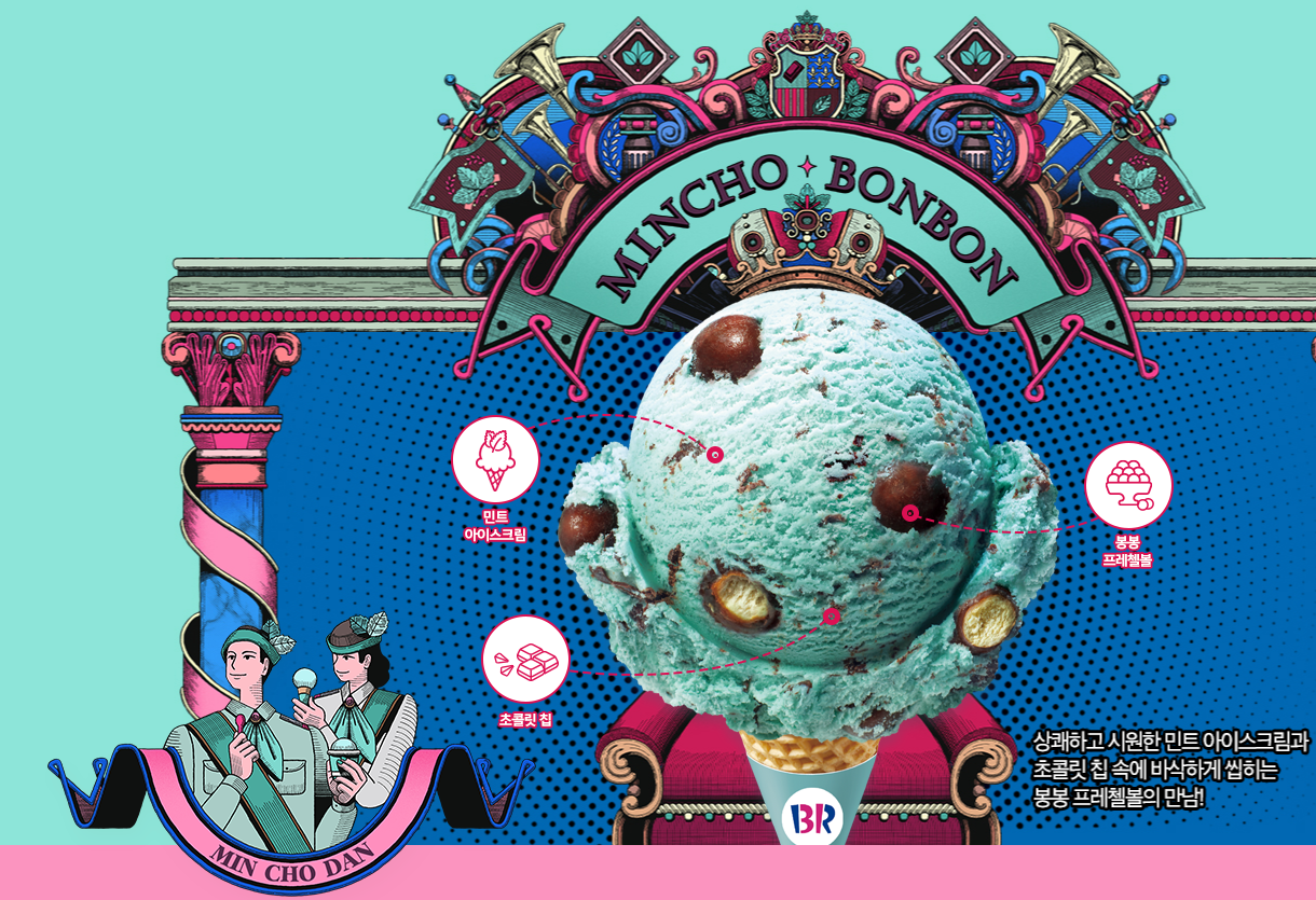 민트초코 좋아하는 사람들을 민초단이라고 부르는데 나름대로 홍보 이미지 한구석에 민초단도 박아놨다.