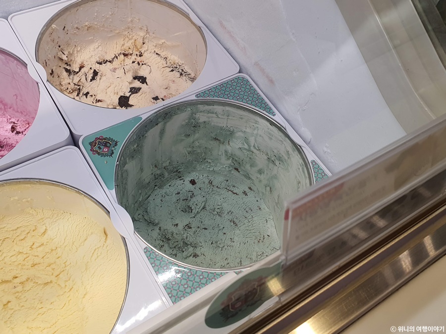 파인트 시키면 일단 고정으로 2개 넣는게 레인보우 샤베트하고 엄마는 외계인인데 한 개는 동생이 민트초코 봉봉을 골랐다.