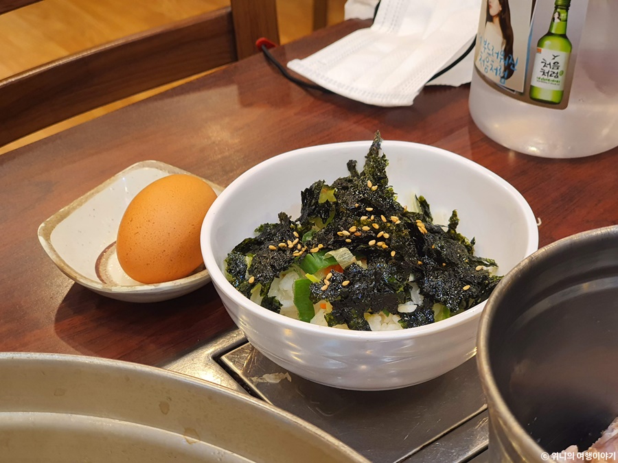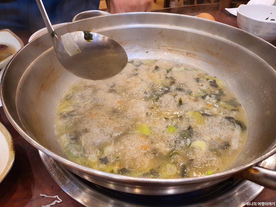 역시나 닭한마리 이렇게 먹으면 마지막은 죽 먹는게 딱 적절한 마무리다. 사장님이 계란하고 죽하고 같이 갖다주신다.