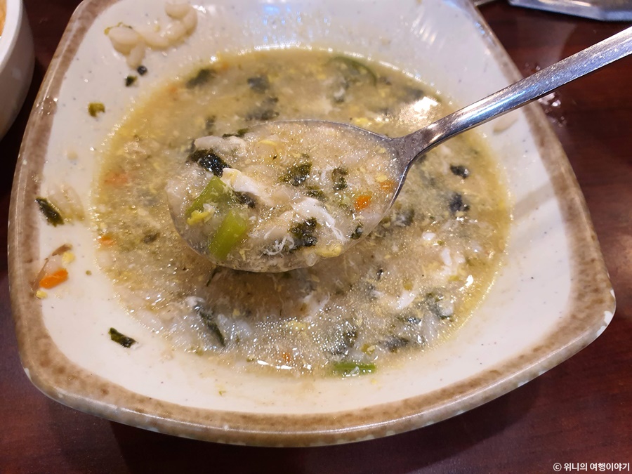 진짜 죽 먹은게 가장 맛있었다. 육수의 맛이 그대로 베어있어서 싹싹 긁어서 퍼먹었다.