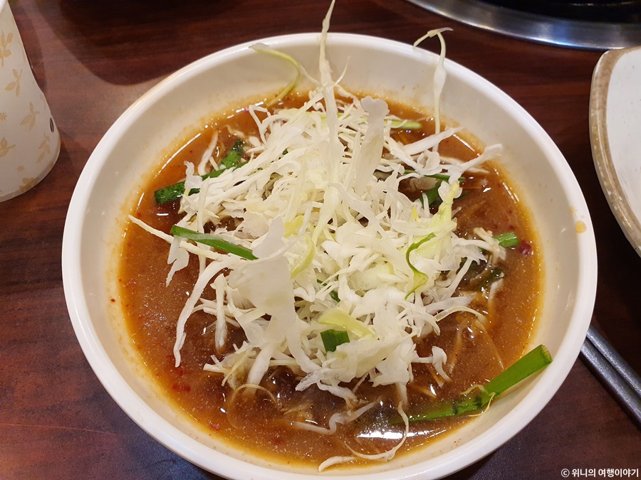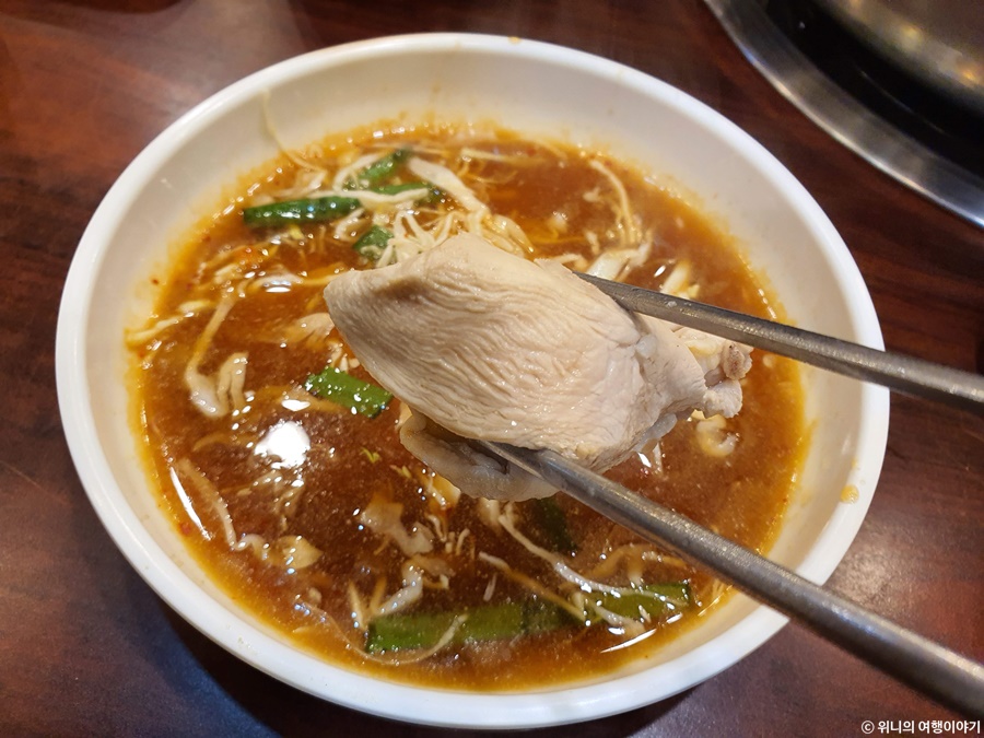 전체적으로 육수도 괜찮고 맛있었다. 아까 얘기했던대로 샐러드를 소스에 넣어서 닭도 같이 먹으면 깔끔하니 맛있다.
