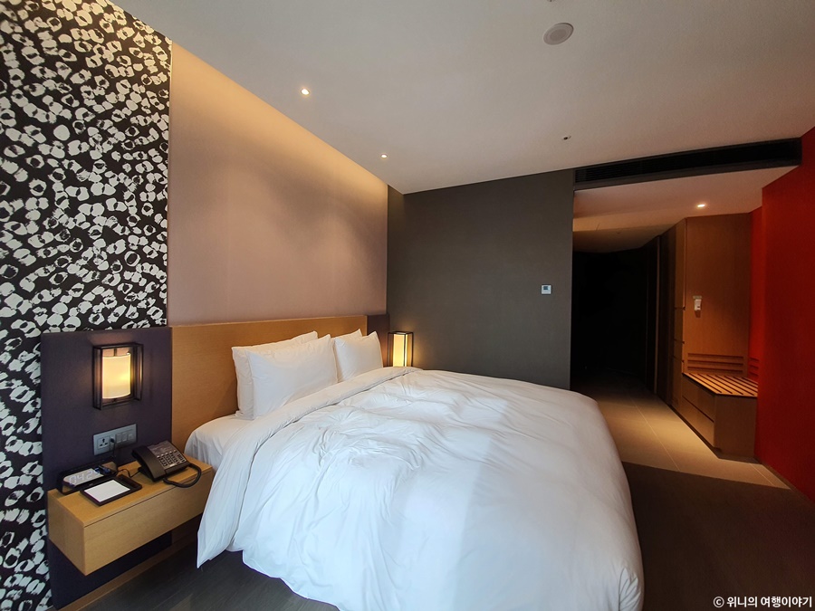 킹 사이즈의 침대가 있는 방이다. 킹 사이즈에서 잘 때 마다 느끼는데 역시 침대는 큰 게 편하긴 하다.