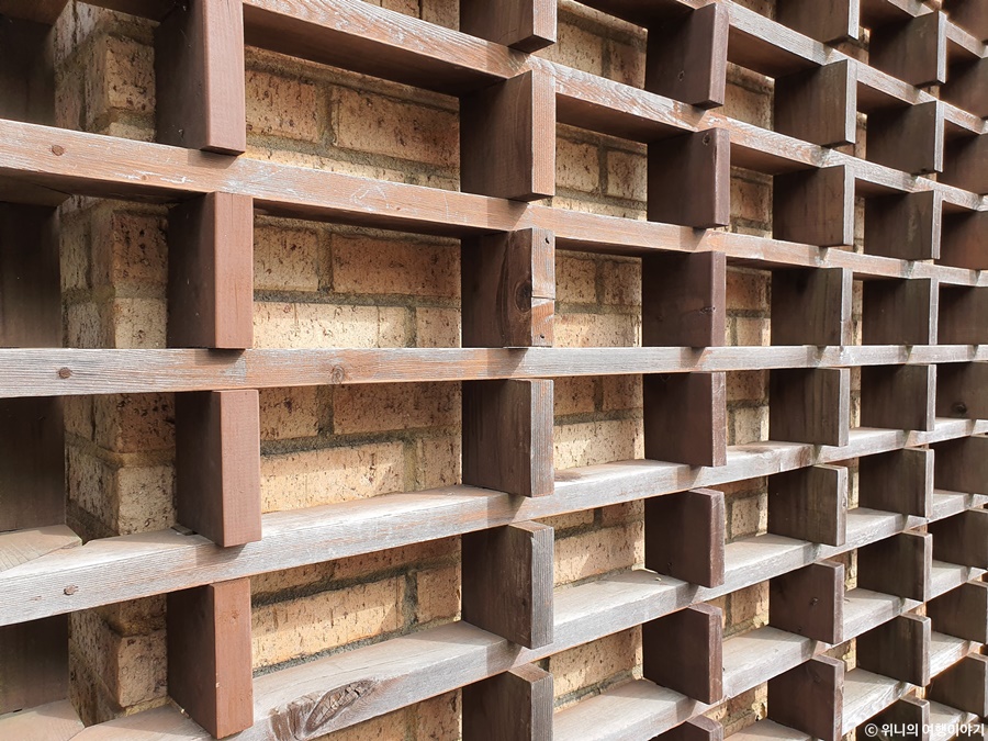 한쪽 벽을 돌담처럼 마감 해놨다.