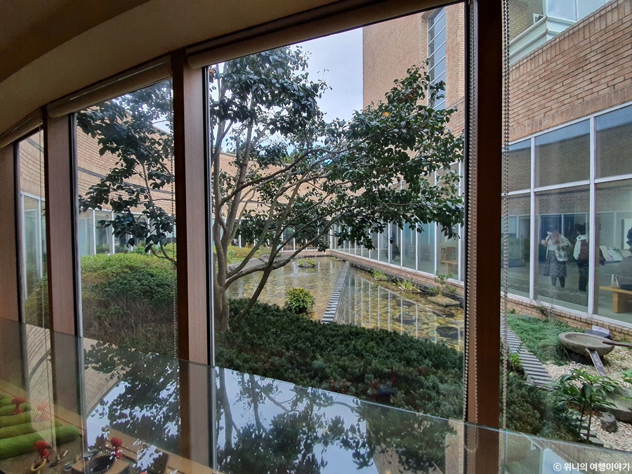 가운데 중정 쪽에 연못이 있어서 건물 내부에서도 자연을 느낄 수 있다.
