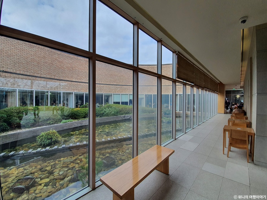 가운데 중정 쪽에 연못이 있어서 건물 내부에서도 자연을 느낄 수 있다.