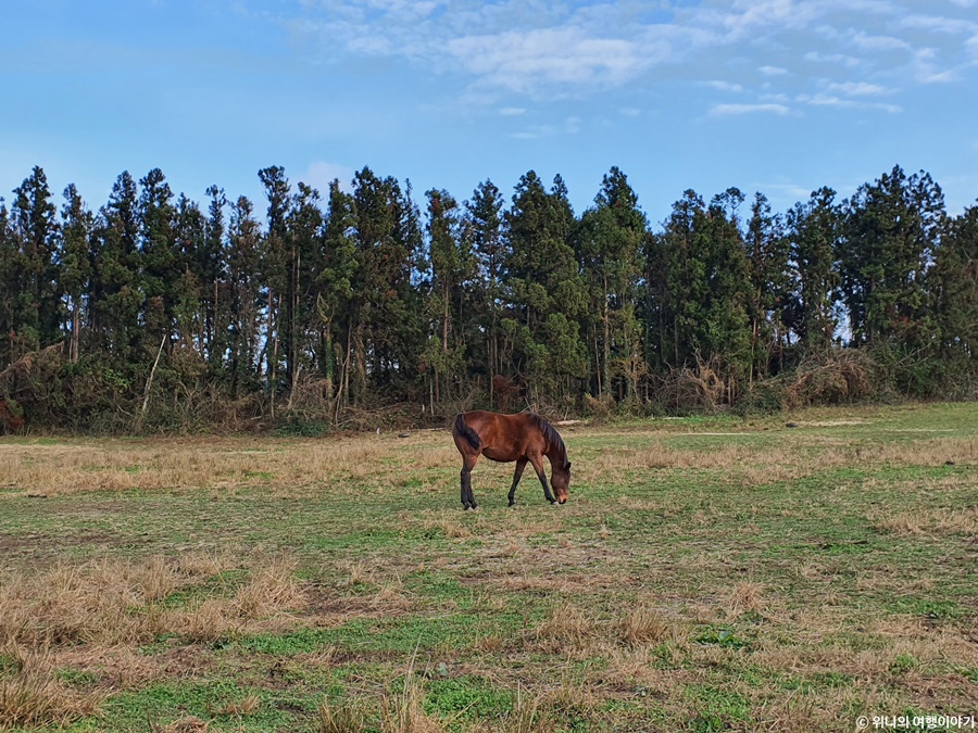 도착해서 가장 먼저 눈에 띈 건 잔디를 뜯어 먹고 있는 말들이었다.