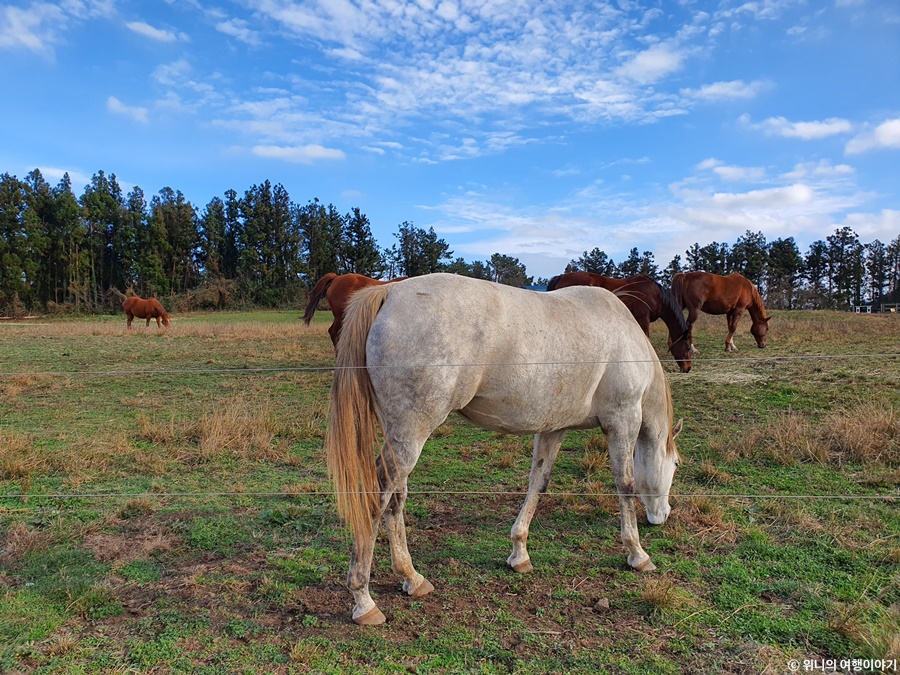 도착해서 가장 먼저 눈에 띈 건 잔디를 뜯어 먹고 있는 말들이었다.