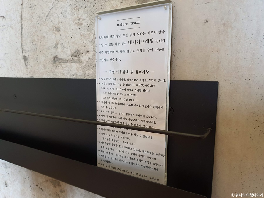 마지막에 금능, 협재 쪽에 숙소를 잡기로 했는데 몇 개의 후보지를 주길래 네이처트레일이란 숙소로 선택했다.