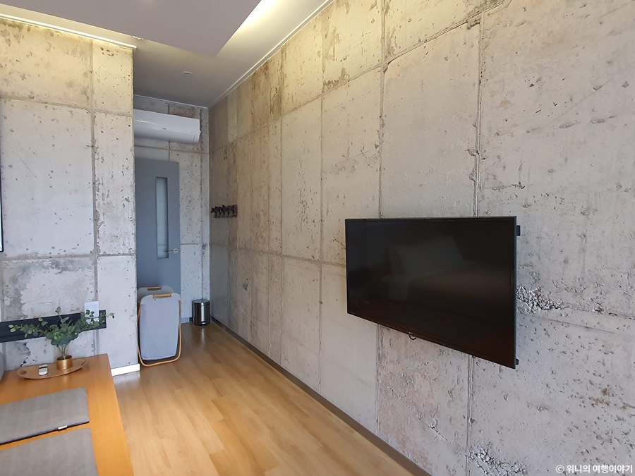 침대에서 바라보는 방향이 아니긴 하지만 TV도 설치되어있다. 물론 들어와서 보진 않았던거 같지만.