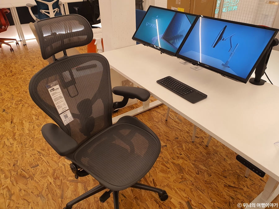 하이엔드급 의자라 치면 내가 아는 선에선 허먼밀러하고 팀쿡의자로 불리는 휴먼스케일 프리덤 의자가 생각이 나는데, 허먼밀러 제품을 체험해볼 수 있는 곳이 주변에 한 곳 있었다.