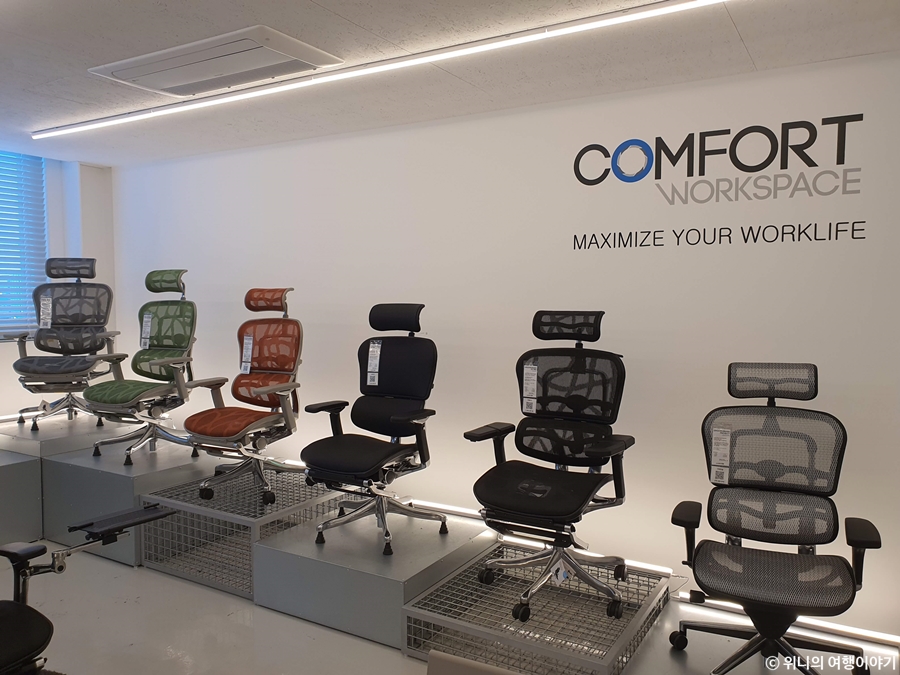 1시간 정도 체험을 할 수 있는데 남은 시간이 꽤 있길래 허먼밀러 말고 다른 제품도 한번 추천해주실 수 있냐고 여쭤봤더니 직원분이 2층에 있는 컴포트 라는 회사의 제품도 체험해보라고 하셨다.