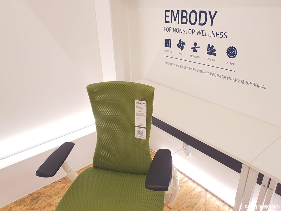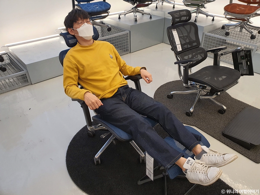 1시간 정도 체험을 할 수 있는데 남은 시간이 꽤 있길래 허먼밀러 말고 다른 제품도 한번 추천해주실 수 있냐고 여쭤봤더니 직원분이 2층에 있는 컴포트 라는 회사의 제품도 체험해보라고 하셨다.