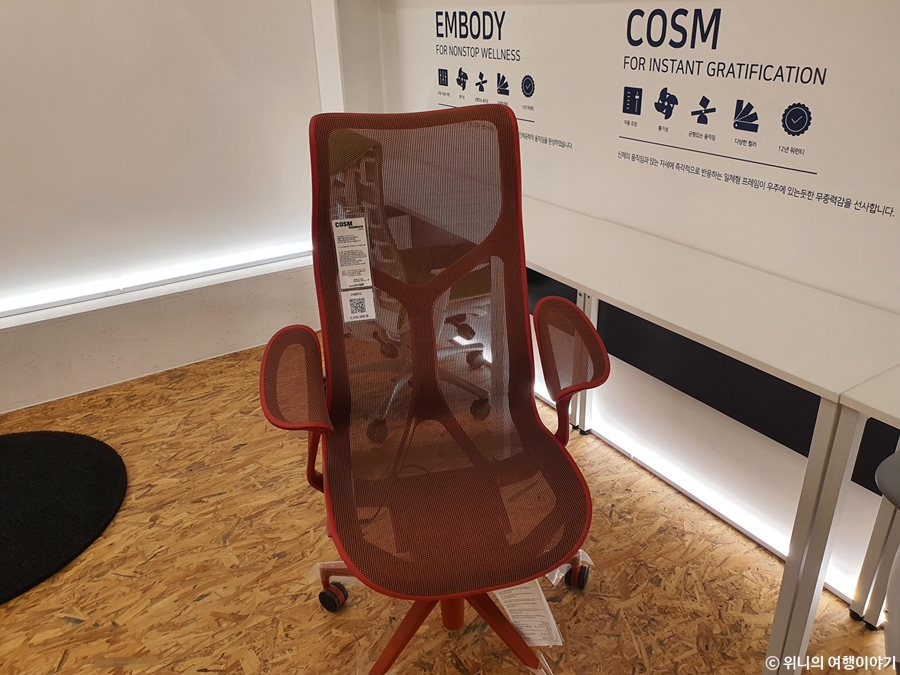 여기서 봤던 제품 중에 가장 비싼 제품이 허먼밀러의 엠바디였다. 가격은 287만원.