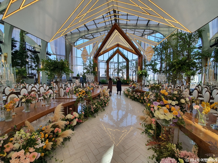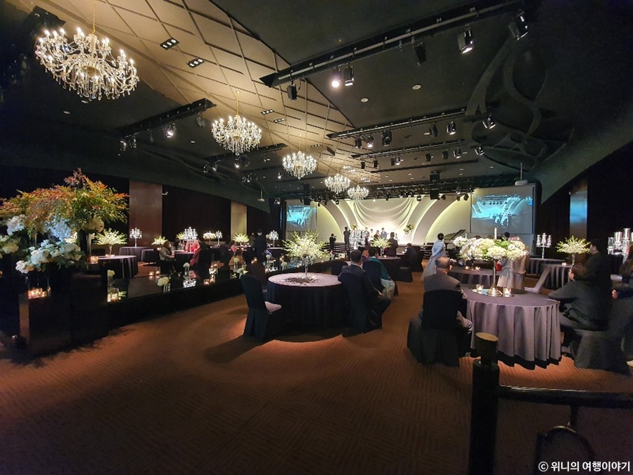 엘리베이터 타고 5층에서 내렸는데 와.. 미친 진짜.. 입이 떡 벌어질 정도로 홀이 너무 이뻐서 말이 안 나왔다.
