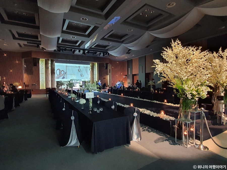 엘리베이터 타고 5층에서 내렸는데 와.. 미친 진짜.. 입이 떡 벌어질 정도로 홀이 너무 이뻐서 말이 안 나왔다.