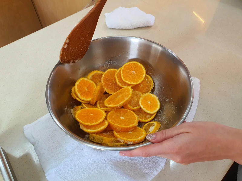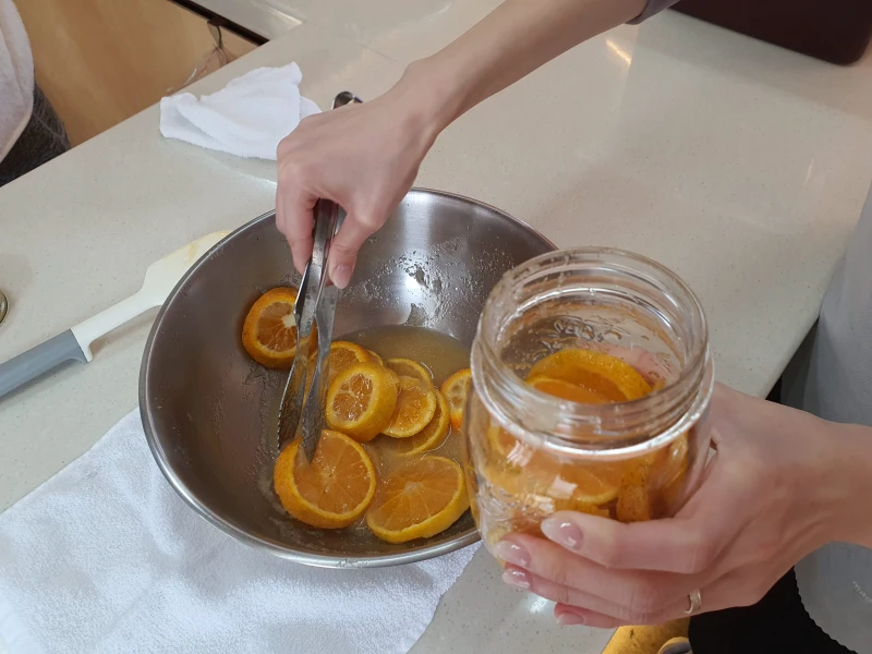 열심히 설탕과 한라봉을 섞고 나서 유리병안에 차곡차곡 잘 담으면 된다.