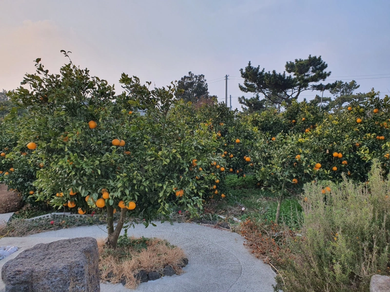 체크인해서 짐 풀고 잠깐 쉬다가 저녁 먹으러 가기 전에 한라봉 밭 구경이나 한번 하러 나왔다.