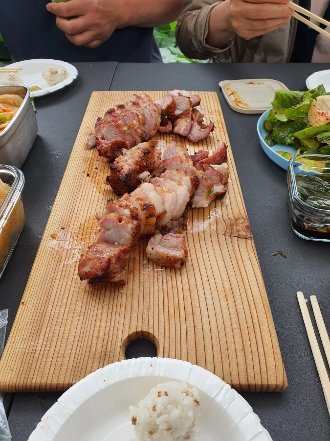 집에서 어머니가 고기를 제외한 나머지 반찬들과 밥, 음료 등을 챙겨 오셔서 그 때 부터 제대로 식사 준비를 시작했다.