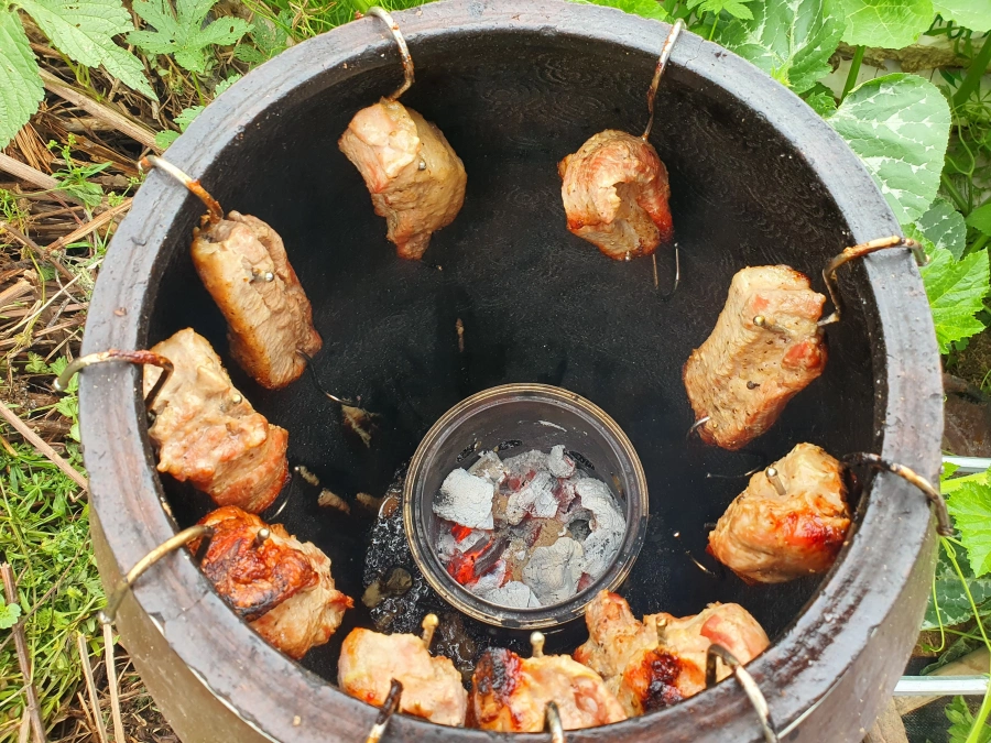 항아리는 시골 외가집에서 가져오셨던거 같고, 안에 숯을 넣어서 천천히 익히는 방식인데 숯 들어가는 통을 좀 크게 바꾸고 나선 불이 강해져서 그런지 1시간 정도면 익는다고 하시더라.