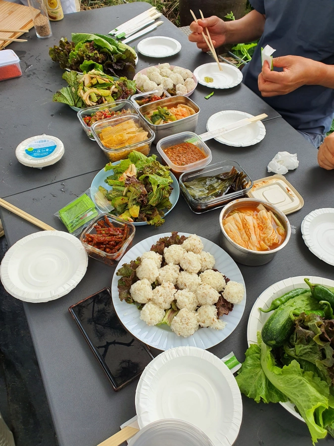 씻어놓은 상추로 이 자리에서 바로 상추 겉절이도 만드셨다. 소스 같은건 미리 집에서 다 준비해오신..