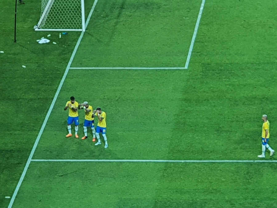 브라질이 워낙 골을 많이 넣어서 몇 번째 골인지 기억은 안 나지만 선수 세명이 세레머니로 춤을 추고 있었다.