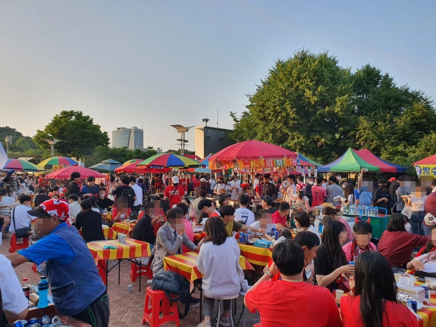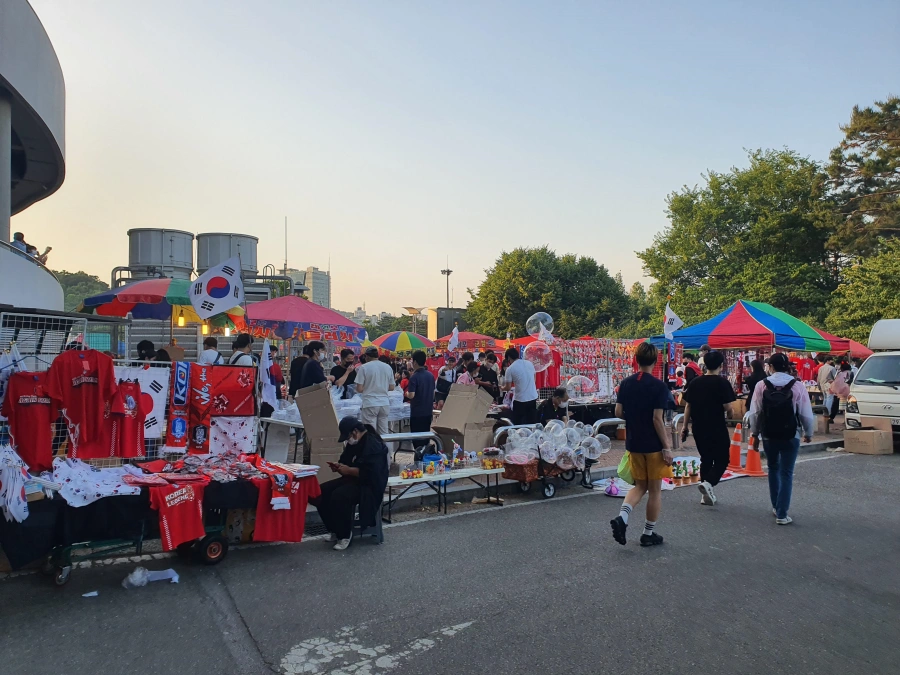 6호선 월드컵경기장 역을 내리면서 부터도 많다고 생각했는데, 경기 시작 시간보다 1시간 30분 정도 일찍 왔는데 사람들이 어마어마했다. A매치 당일에 이렇게 좌판이 많았나? 싶기도 하고.