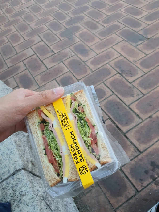 감사하게도 샌드위치를 미리 사두셔서 한 개를 먹고 남은 한 개는 와이프 주려고 했는데 보니까 샌드위치에 마요네즈가 발려져 있는거 같더라.