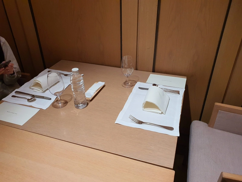 기본적으로 테이블 세팅이 쭉 되어있는 듯 한데 집기류 이외에는 간단하게 물만 준비 되어 있었다.
