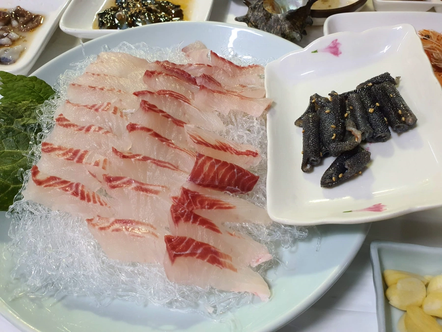 돌돔회는 처음 먹어봤는데 일단 다른 횟감보다 식감이 단단해서 쫄깃한 느낌이 난다. 회 자체가 기름기가 좀 있기도 한데 부담스러운 맛은 전혀 없었다.