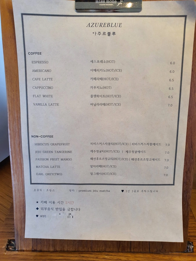 아주르블루는 바닷가 바로 앞에 위치한 카페라 들어가자마자 시원한 바다 전망을 느낄 수 있었다.