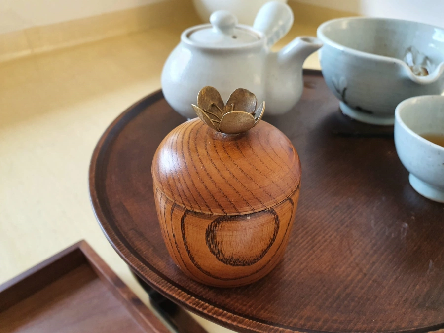 다과가 딱 이쁘게 자개 장식된 그릇에 담겨져 나오더라. 차 이름 적혀져있는 팻말 옆에는 과자 먹을 때 찍어먹으라고 같이 나온거다.