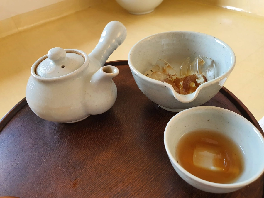 차는 얼음 담겨진 그릇에 한번 따랐다가 다시 잔에 따라 마시는걸 추천한다 하셨다.